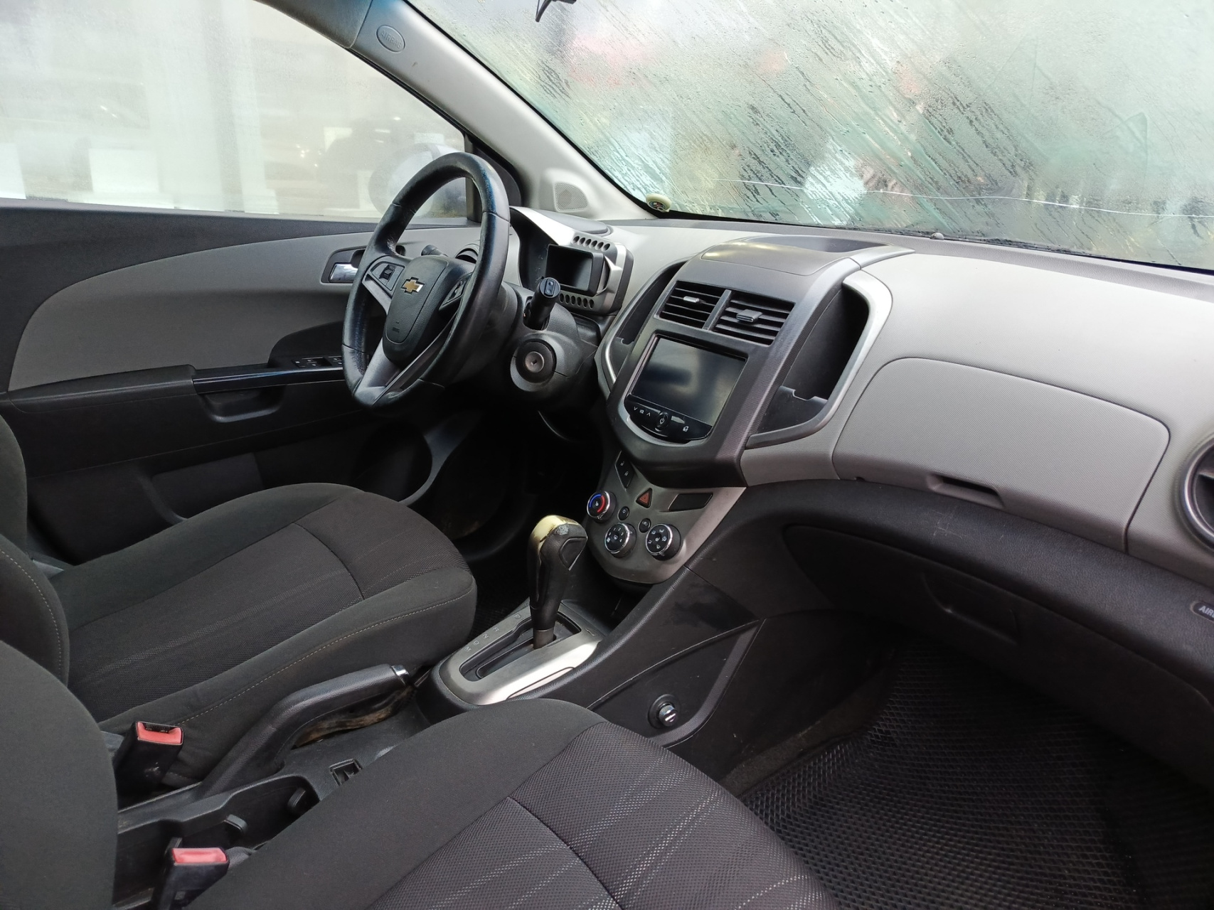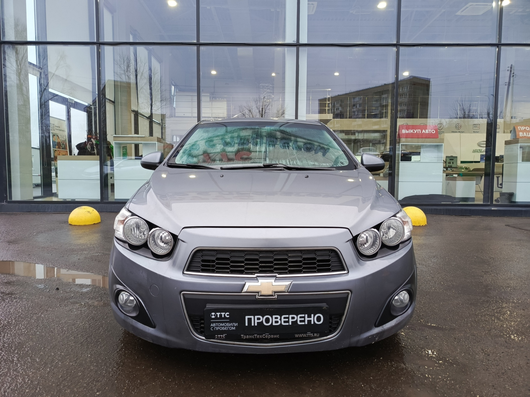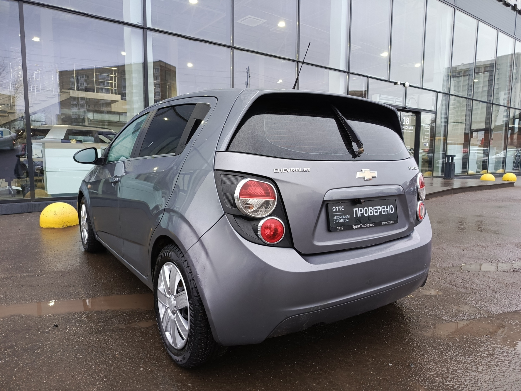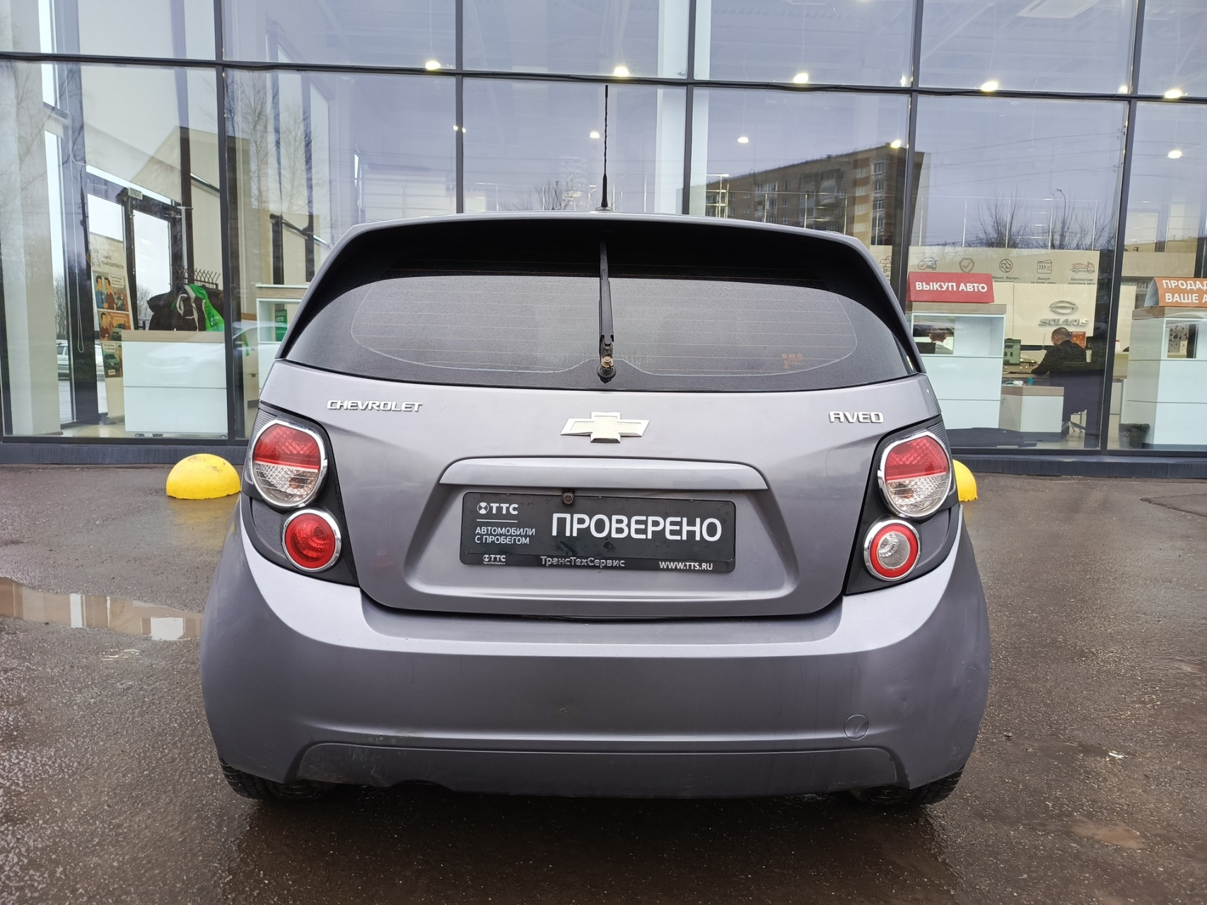 Chevrolet Aveo II, 2013 года выпуска, который представляет собой пятидверный серый хэтчбек.