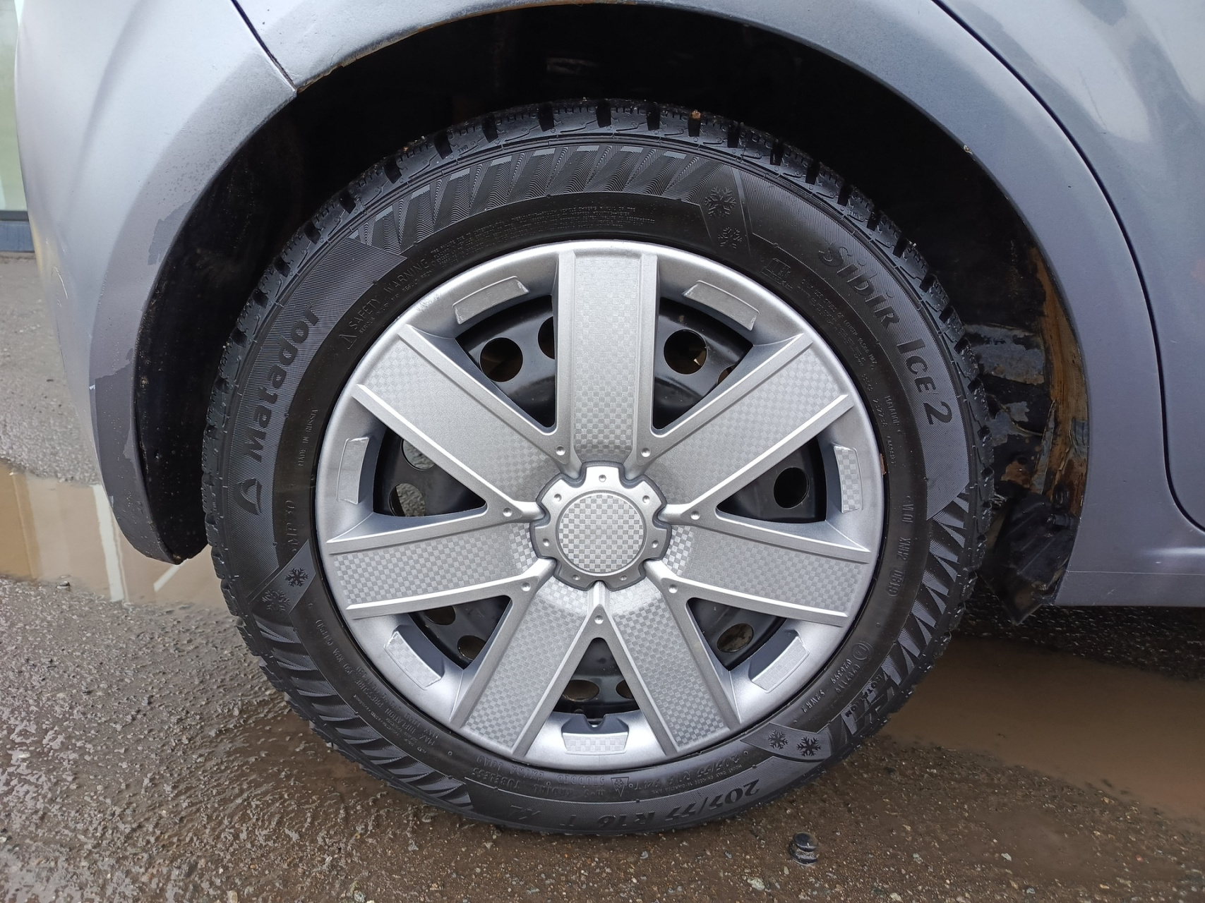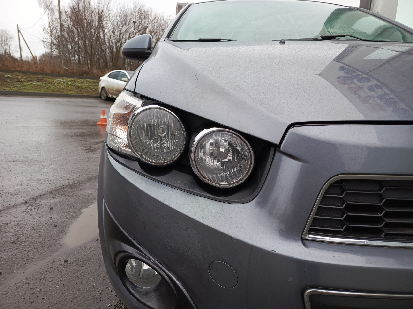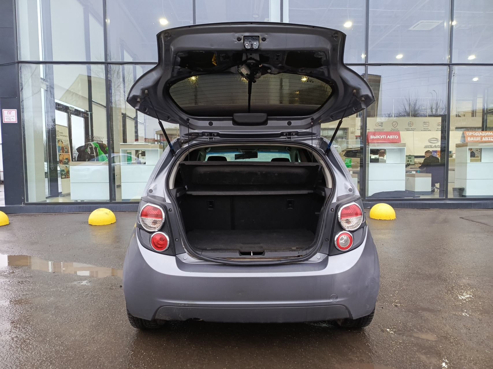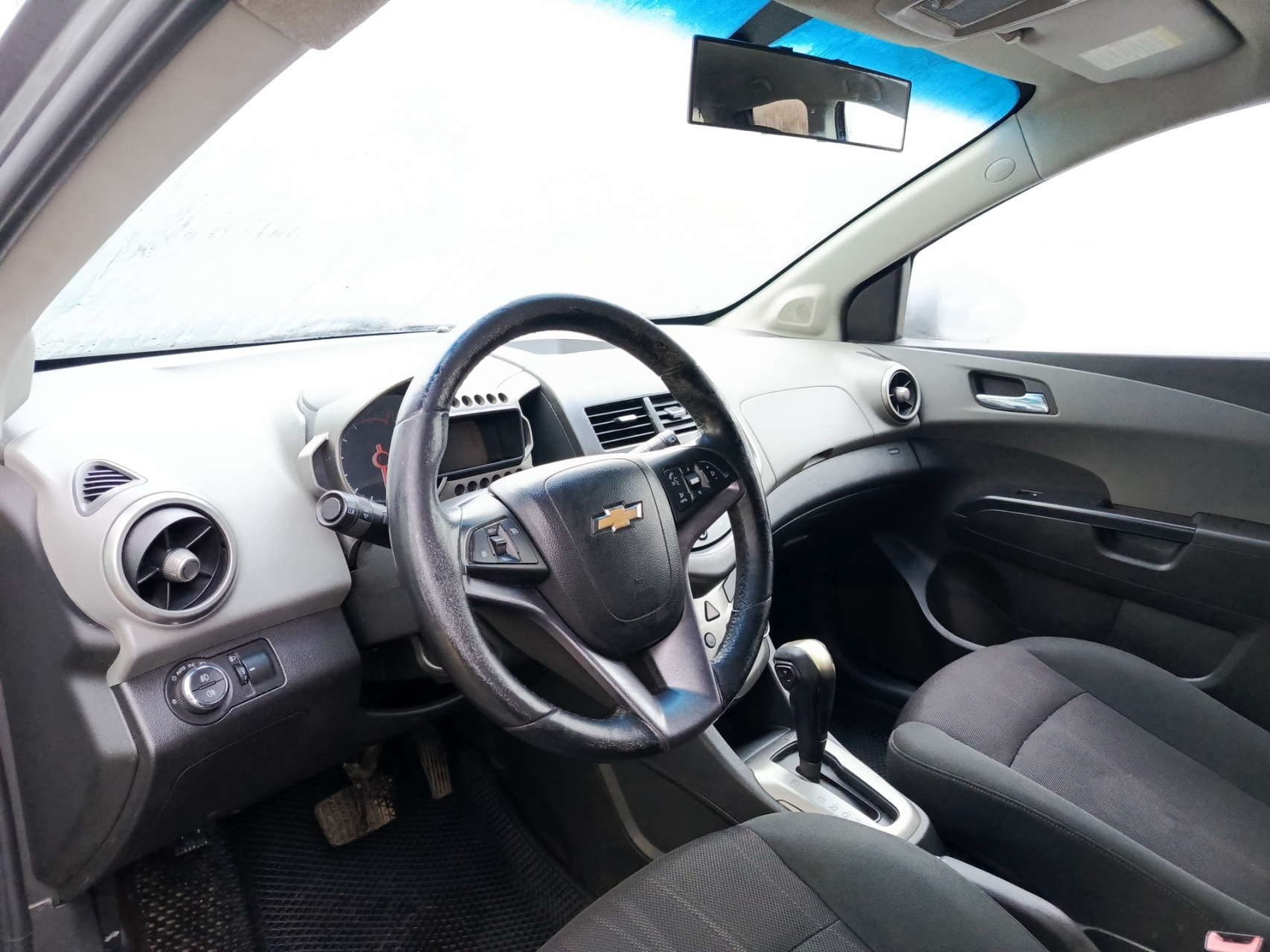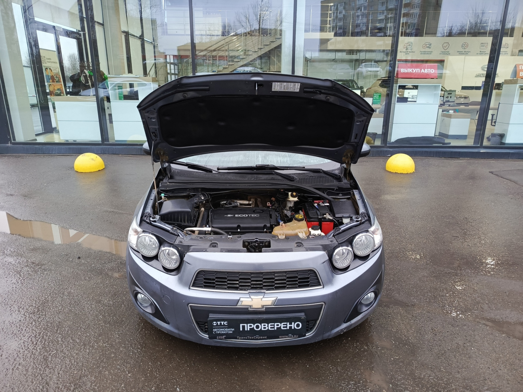 Chevrolet Aveo II, 2013 года выпуска, который представляет собой пятидверный серый хэтчбек.